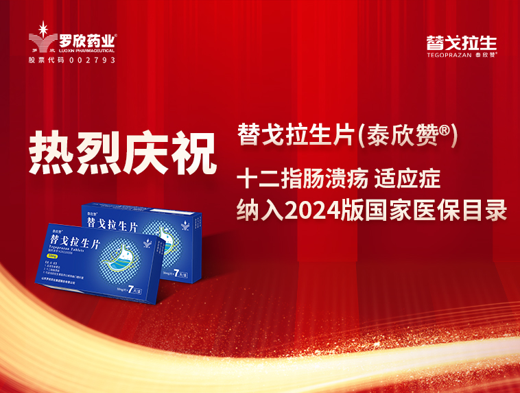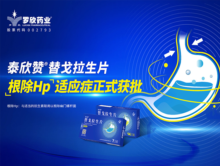 罗欣药业创新药替戈拉生片(商品名:泰欣赞®)新适应症“与适当的抗生素联用以根除幽门螺杆菌”获批上市