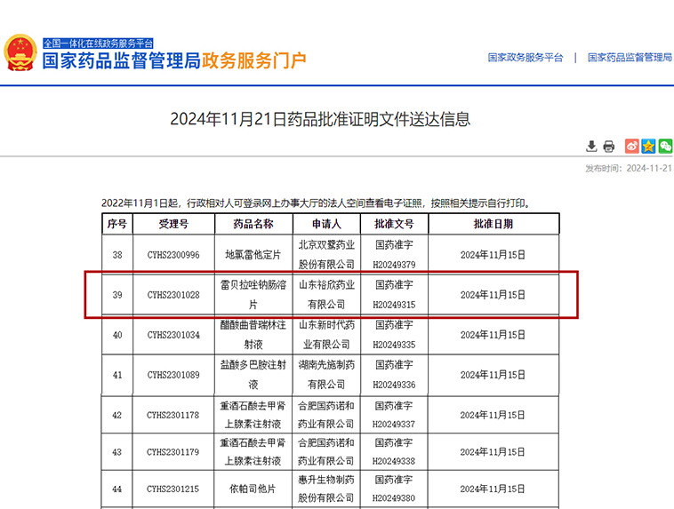 罗欣药业雷贝拉唑钠肠溶片获批上市