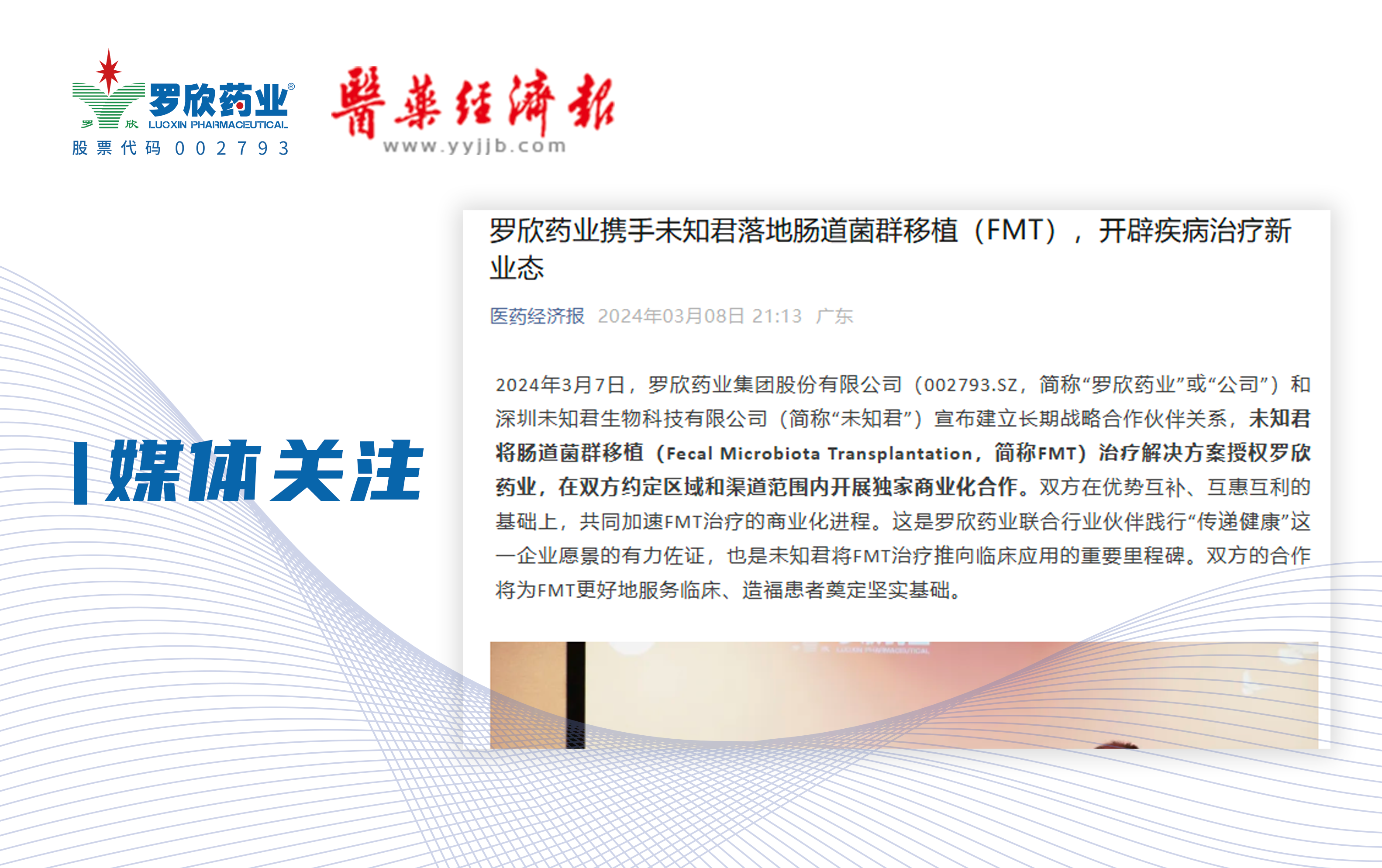 医药经济报报道|罗欣药业携手未知君落地肠道菌群移植(FMT),开辟疾病治疗新业态