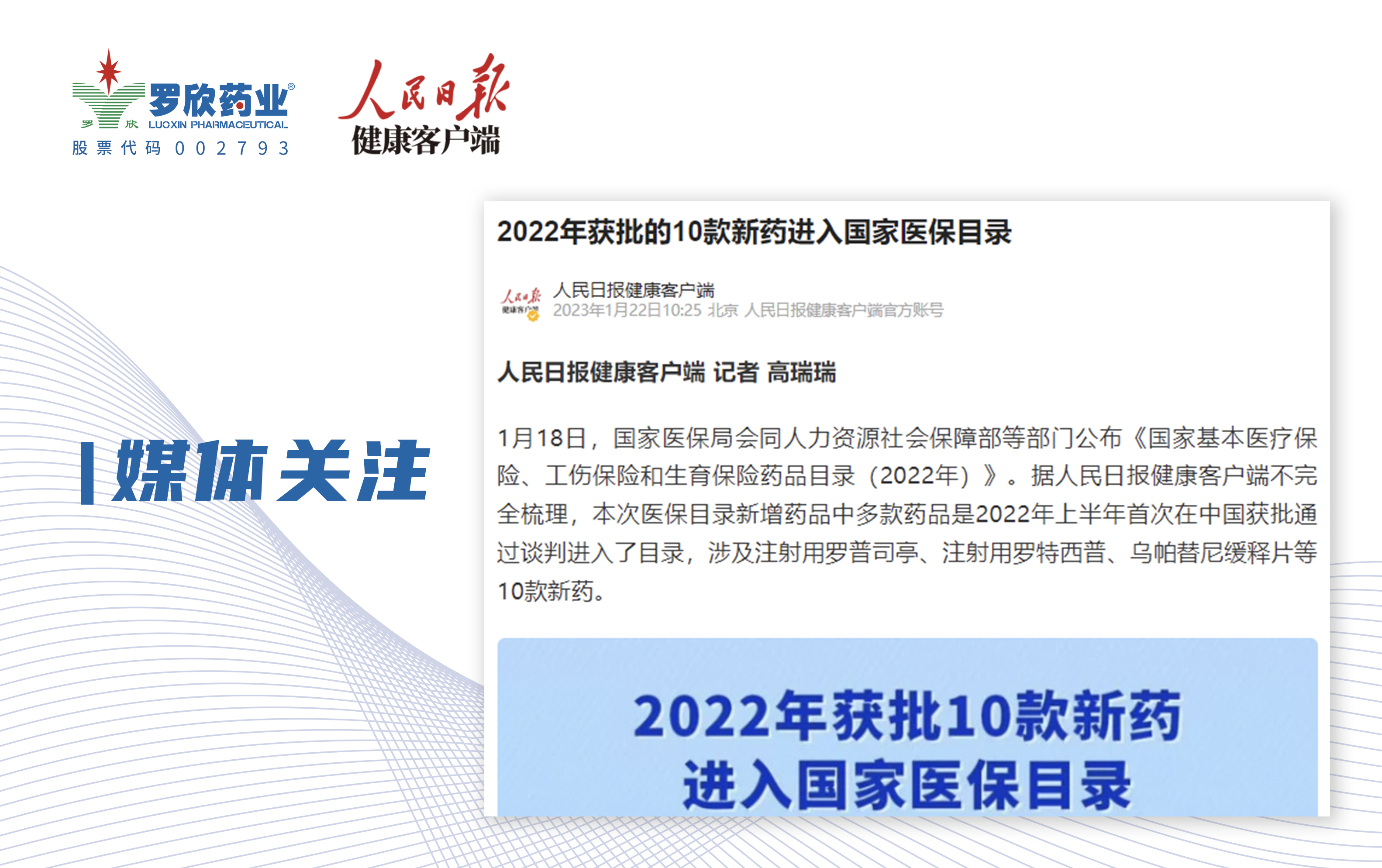 人民日报健康客户端报道 | 2022年获批的10款新药进入国家医保目录