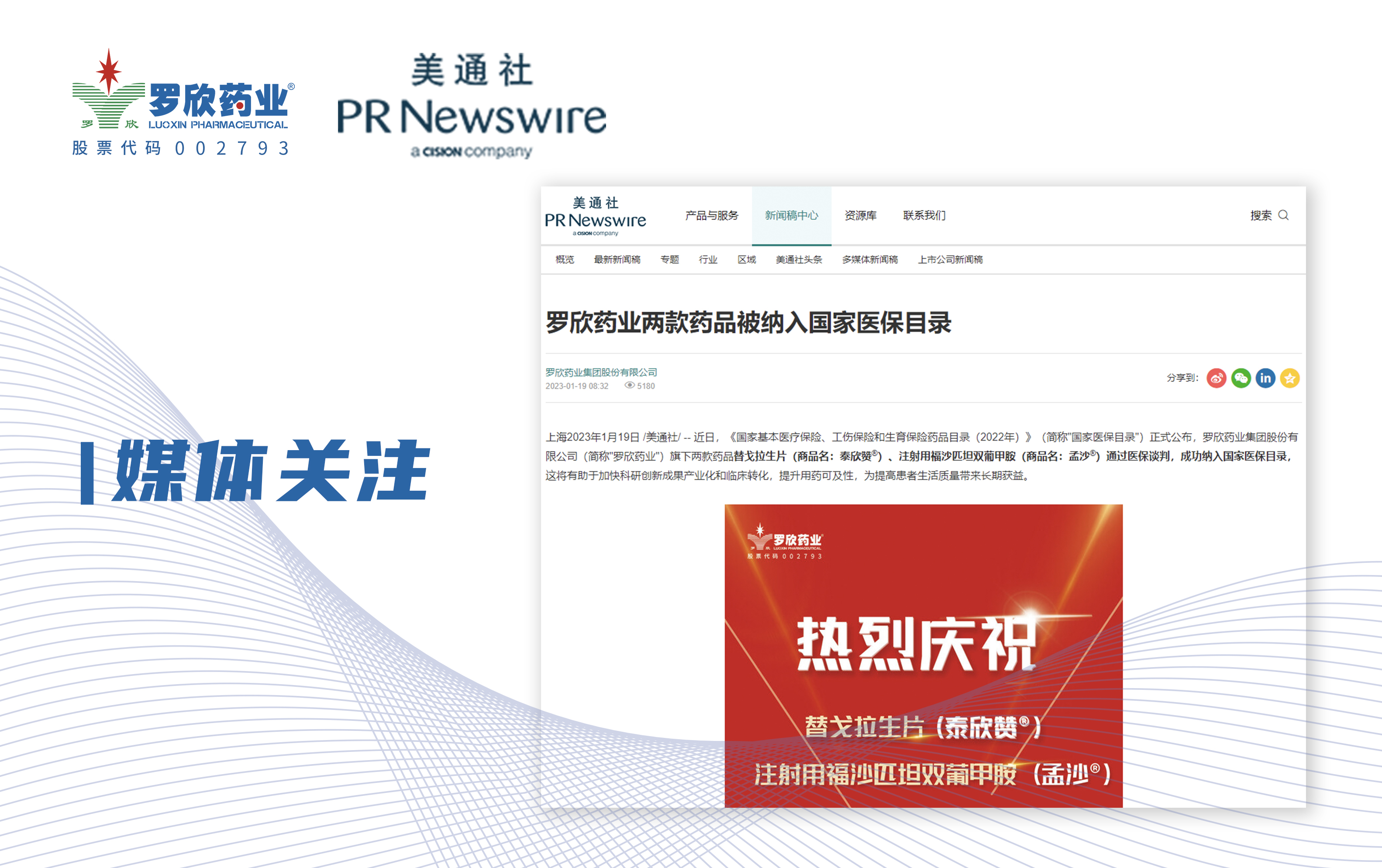 美通社报道 | 罗欣药业两款药品被纳入国家医保目录