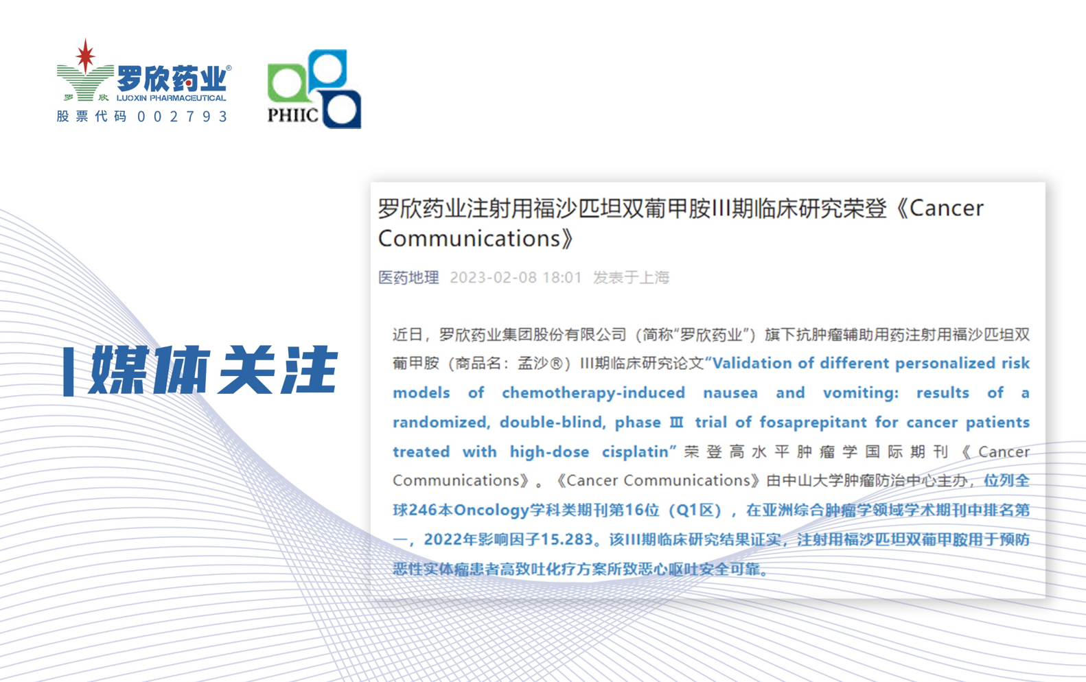 医药地理报道 | 罗欣药业注射用福沙匹坦双葡甲胺III期临床研究荣登《Cancer Communications》