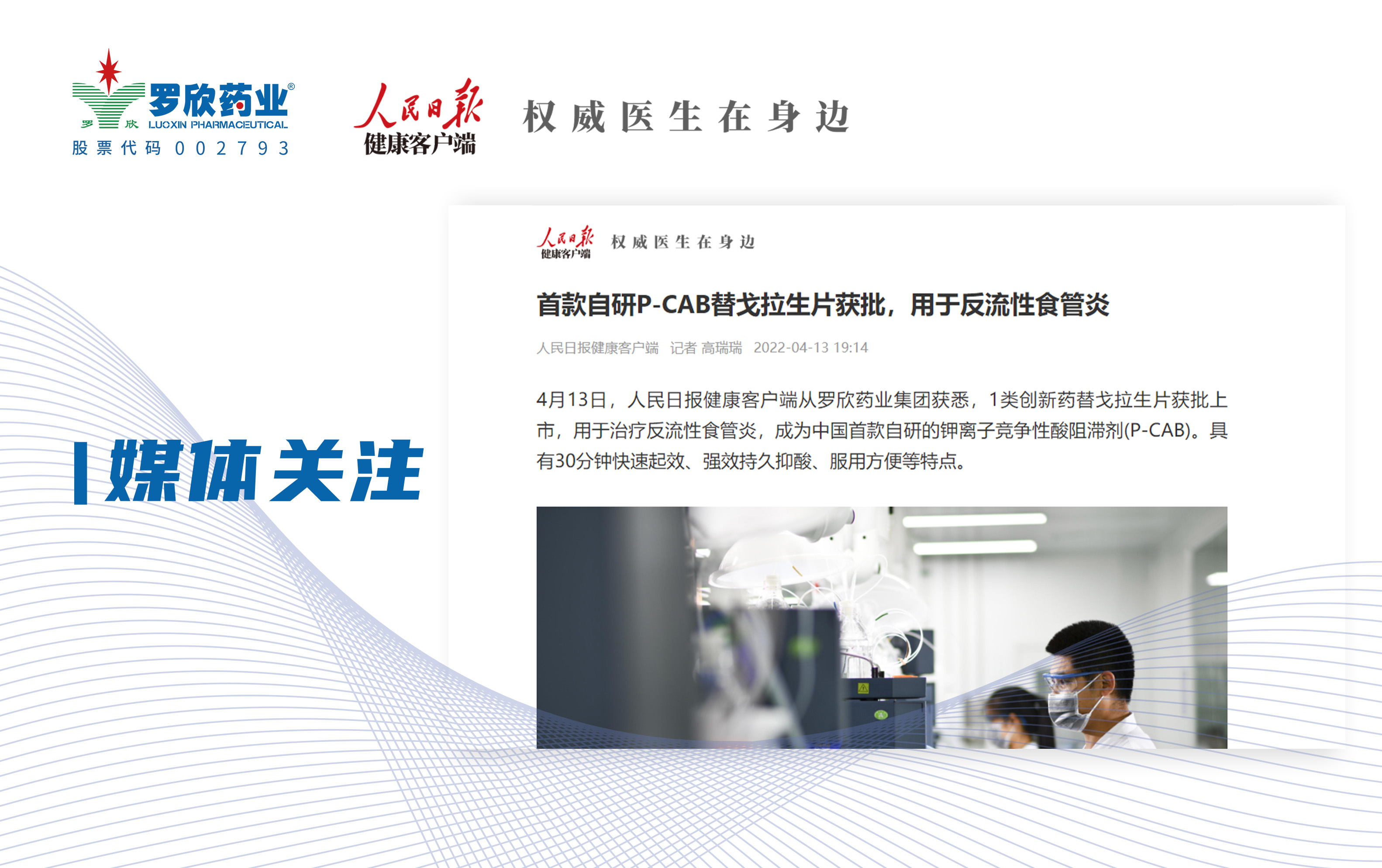 人民日报健康客户端报道 | 首款自研P-CAB替戈拉生片获批 用于治疗反流性食管炎