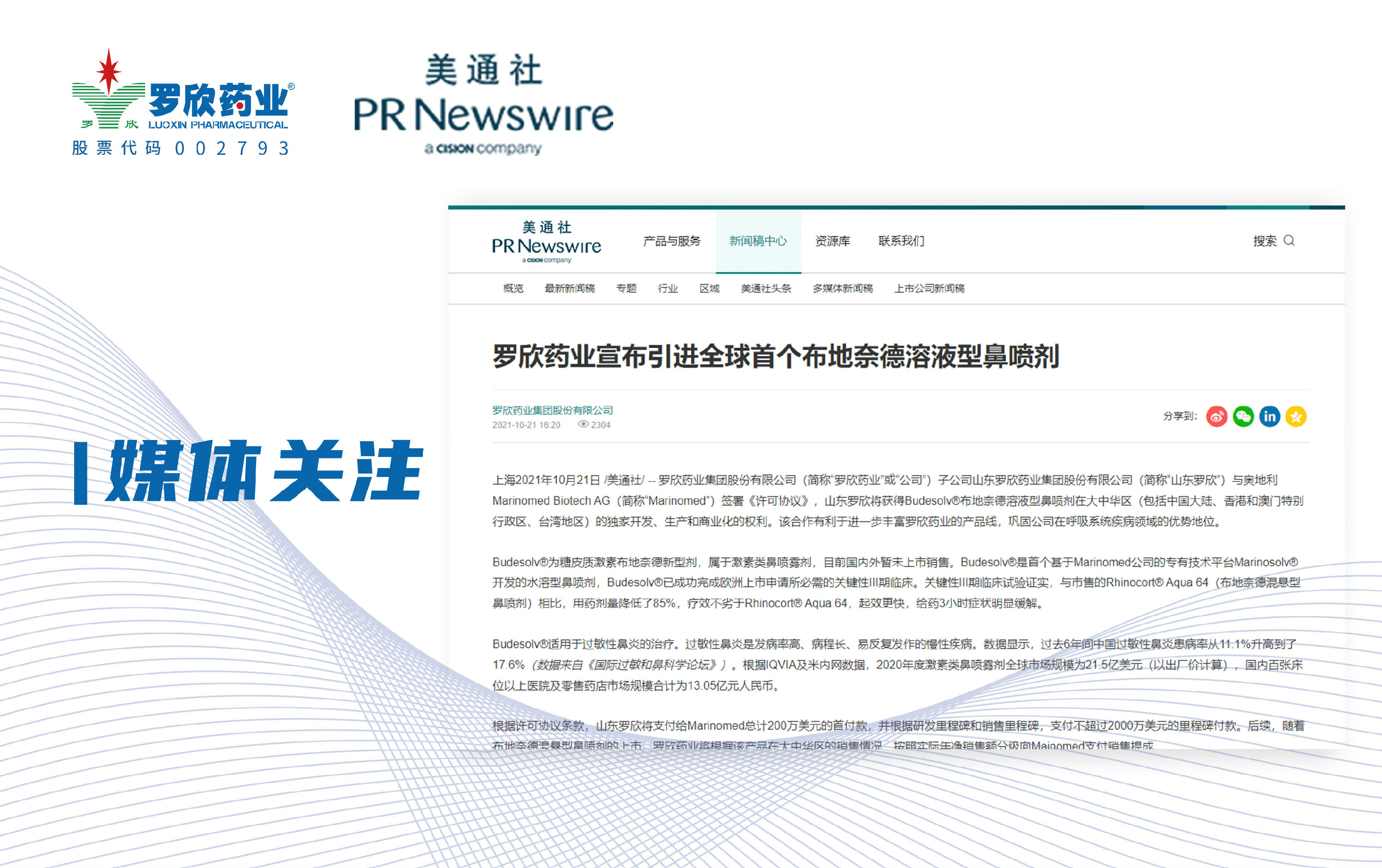 美通社报道 | 罗欣药业宣布引进全球首个布地奈德溶液型鼻喷剂