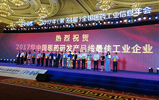 9月2日,由中国医药工业信息中心主办的“2017年(第34届)全国医药工业信息年会”在成都召开。会上,全国医药工业百强榜最新榜单正式揭晓,我公司再次被评为“中国医药研发产品线最佳工业企业”,位列第3位,并连续进入“中国医药工业百强企业”,位列第37位。
