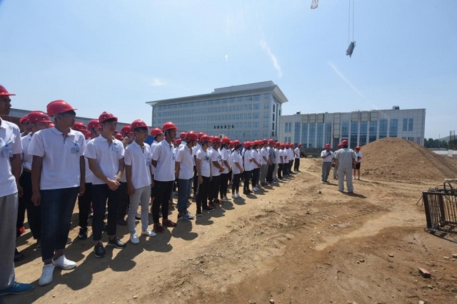 在新建的头孢原料车间、化药原料车间里,新入职的大学生感受到了企业规模的不断扩大和新车间建设的现代化。尤其是在施工现场,他们看到施工人员在连日持续高温的环境中依然坚守在工作岗位上,为确保工程质量进度挥汗如雨的工作场景,对于这些即将走入各个不同舒适工作岗位的大学生们,都受到了极大的感染和触动,大家纷纷表示一定要珍惜机会,好好工作。