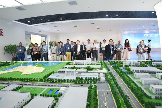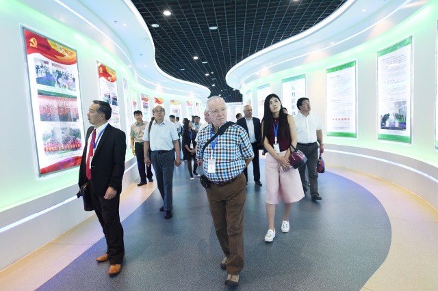 图为山东传统医药创新发展国际学术研讨会与会人员参观我公司展厅时的情景
