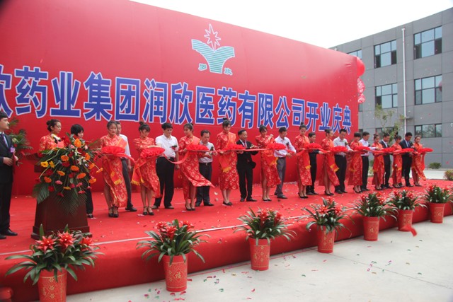 图为庆典仪式上与会领导为山东罗欣药业集团润欣医药有限公司开业剪彩的情景