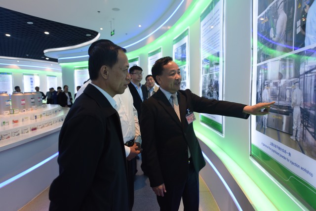 王书坚一行参观了罗欣集团展厅,详细了解了集团的企业文化、发展历程、科技创新体系以及取得的重大科研成果等情况,认真听取了集团“十三五”发展规划目标,并与董事长刘保起就医药企业及发展进行了深入交流。