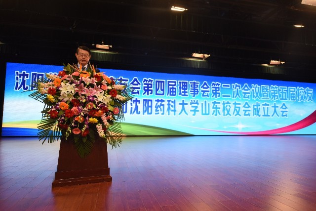 上图为沈阳药科大学校友会第四届理事会第二次会议暨第五届校友会高峰论坛和沈阳药科大学山东校友会成立大会现场
