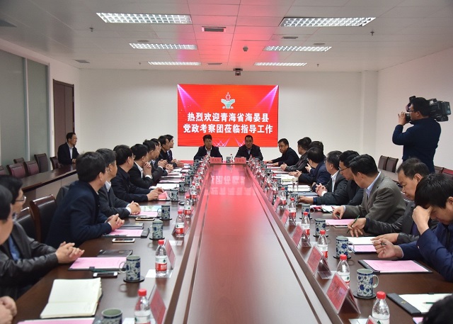 上图为青海省海晏县党政考察团与市区领导座谈交流的情景