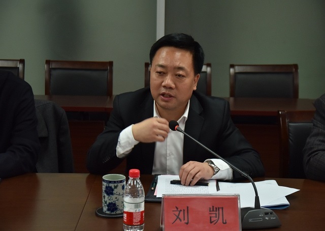 上图为区委副书记、区长刘凯介绍罗庄区的情况