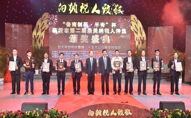4月28日,临沂市第二届“最美纳税人”评选颁奖盛典在临沂市电视台演播大厅举行,临沂市政协主席徐涛,市委常委、常务副市长李沂明,市人大常委会副主任丁善余,市政协副主席李宗涛,市财政局、国税局、地税局等部门主要负责人出席典礼并为获奖企业颁奖,股份集团公司副总经理韩风生作为公司代表上台领奖。