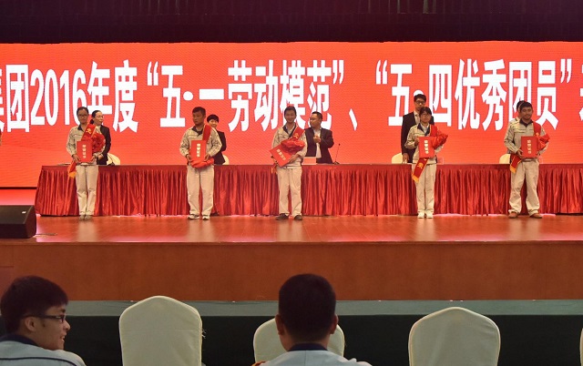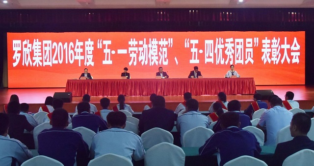 5月4日,公司2016年度“五·一劳动模范”、“五·四优秀团员”表彰大会在罗欣会堂隆重召开,集团部分领导出席了大会并为受表彰人员颁奖。