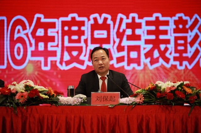 最后,集团党委书记、董事长刘保起先生作了重要讲话,系统分析了当前市场环境、医药行业形势及发展趋势、公司面临的机遇和挑战,在肯定2016年变革转型、取得丰硕成果的同时,指出了亟需解决的问题和存在的不足;就2017年工作规划的模式创新、管理升级等重心工作进行了部署和展望。董事长指出:2016年,医药行业经历了巨大的改变,集团也经历了史上最复杂、最为跌宕起伏的一年。在上半年成绩并不理想的情况下,全体员工共同努力,使下半年销售业绩实现逆转、客户开发增长、各种市场策略成绩显著。同时,他深入浅出地解析了2017年围绕管理升级、模式创新等方面开展工作,积极推进公司“十三五”目标的实现,为集团成立30周年大庆献礼。
