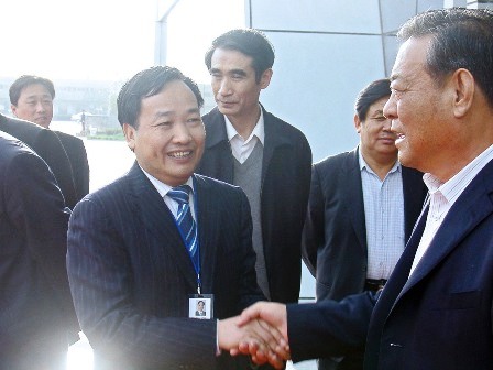 前排右四为李春亭委员、右二为公司董事长刘保起、右三为临沂市委书记连承敏