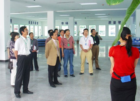 董事长刘保起先生陪同股东们在集团展厅参观