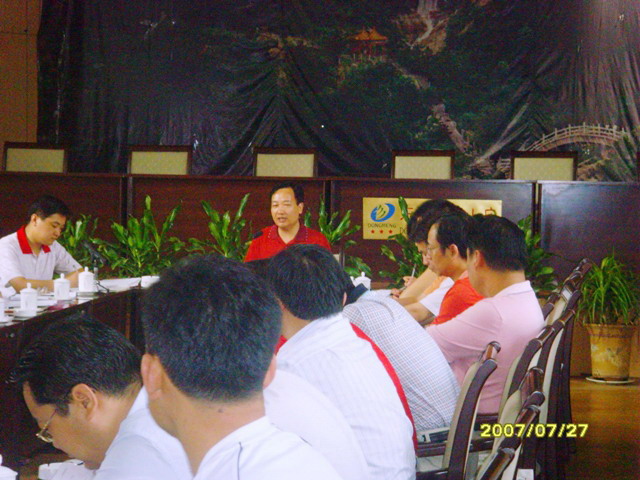 2007年07月26日—29日,集团中层以上管理人员及各岗位骨干人员在风景秀丽的东蒙避暑山庄举行研讨会。会上董事长刘保起先生对目前的医药行业形势进行了分析,并对下半年的工作重点和主要措施进行了安排,同时也对上半年的工作进行了总结,指出了下半年企业的发展方向和工作目标,并讲解了“大讨论,为什么”提纲及管理者自我塑造提纲。各分管副总、部门经理以及各岗位骨干人员在会上一一发言。与会人员纷纷畅所欲言,分别针对公司提出的“大讨论,为什么”进行了分析和总结,并根据各部门实际情况提出了许多好的意见和建议。股份公司总经理李明华女士重点结合工作实际,总结和提出了一些具体环节的要求。通过此次会议,大家进一步统一了思想,明确了目标,达到了预期效果。