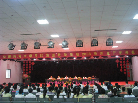 2008年7月18日,“沈阳药科大学罗欣集团教学基地2008级新生开学典礼”在我公司四楼大礼堂隆重举行。沈阳药科大学成人教育学院张殿发院长及孙国祥教授光临我公司参加典礼。典礼由公司副总韩风生先生主持,张殿发院长作了重要讲话,两名学员代表分别进行了发言。下图为“沈阳药科大学罗欣集团教学基地2008级新生开学典礼”现场。