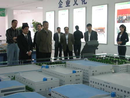 上图为山东省省委第二巡视组副组长、正厅级巡视员邓继光(前排左二)等领导参观公司展厅时情景。