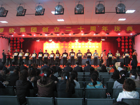 2008年11月16日,罗欣集团创立二十周年庆典在公司四楼大礼堂隆重举行。公司董事长刘保起先生作了20年创业历程的总结报告,对与公司长期共同成长,为公司发展做出突出贡献的员工进行了表彰。获得“创业元勋”“创业功勋”“金牌员工”“银牌员工”“铜牌员工”荣誉称号的代表以及新员工代表分别发了言。这次庆典总结过去、激励斗志、凝心聚力、完善提高、以此为新起点,再创新的辉煌。