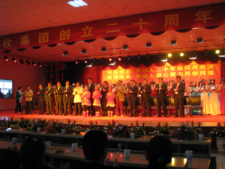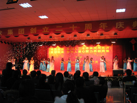 庆典举行期间,员工组织了文艺演出,表演了精心编排的:歌曲、舞蹈、相声、小品、武术等内容丰富多彩的节目,来庆祝集团20岁的生日。