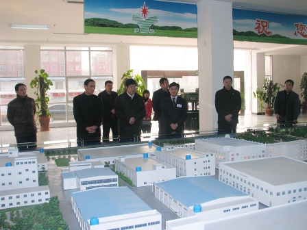 李建文一行观看了公司整体布局沙盘模型,详细了解了企业的发展历程、企业文化以及公司的科研开发和技术创新项目,对公司坚持以科学发展观为指导,健康快速的发展以及取得的众多成果给予高度评价。