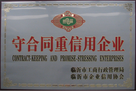 2009年2月,公司被临沂市工商行政管理局、临沂市企业信用协会评为“守合同重信用企业”。