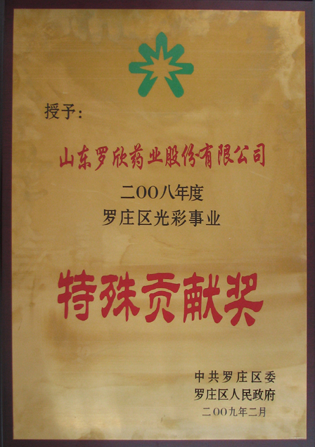 2009年2月,我公司被中共罗庄区委、罗庄区人民政府授予“2008年度罗庄区光彩事业特殊贡献奖”。