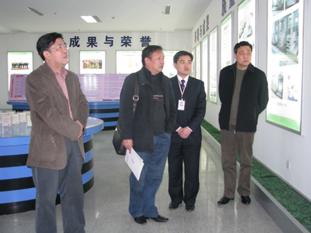 上图为辽宁省丹东市经贸委领导市经贸委,经济运行局局长秦明(前排右一)参观展厅时的情景