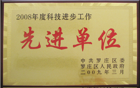 2009年3月,我公司被中共罗庄区委、罗庄区人民政府评为“2008年度科技进步工作先进单位”荣誉称号。