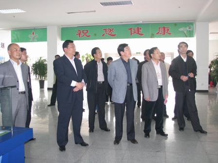 上图为市人大常委会党组书记、第一副主任朱绍阳(前排右三)带领市人大常委会视察调研组参观展厅时的情景