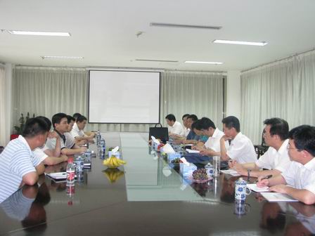 上图为日照市发展和改革委员会副主任范宇欣(前排左三)一行参观展厅时的情景 上图为日照市发展和改革委员会副主任范宇欣等领导在三楼会议室座谈时的情景