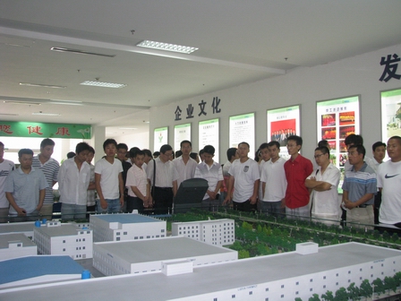 上图为新入职员工参观罗欣集团临沂罗欣医药公司的情景