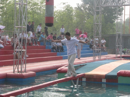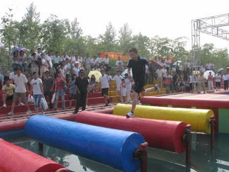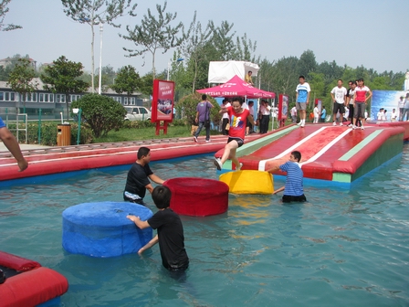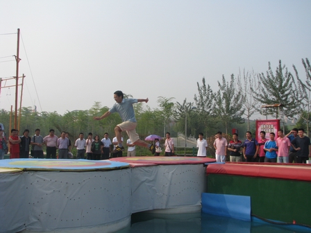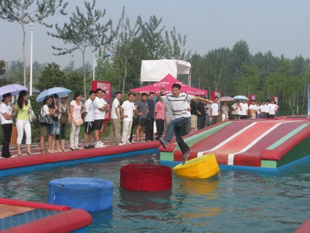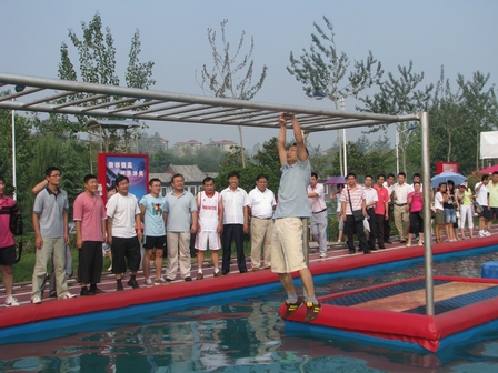 在集团办公室的精心准备下,全体市场人员集体乘车前往临沂市知春湖参加全运向前冲拓展活动。在员工们的欢声笑语中,大家很快来到了知春湖,优美的环境与清新的空气顿时让所有员工感觉到精神清爽。随后活动开始,员工玩的兴高采烈,场上不时传来大家在拓展赛道上的呼叫声与跌落在水中的欢笑声,传送带、水上漂浮、大转轮、独木桥、扣篮,在电视上看似简单容易的一道道关卡,在参与者的脚下,却是那么地不容易,熔炼了大家的意志。整个活动赛场经主持人的穿针引线,分解成了一个个诙谐欢乐的镜头,让人流连忘返。