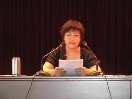 上图为山东罗欣药业股份有限公司总经理李明华女士对全体员工进行GMP知识培训