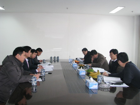 上图为济宁市发改委党组副书记、副主任刘福帅,临沂市发改委党组副书记、副主任王新生等在管理中心二楼会议室与公司管理层座谈时的情景。
