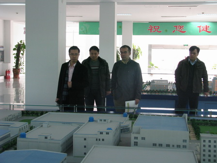 上图为上海朗诚资产管理有限公司余春风总经理(前排左一)、深圳市熙浩投资发展有限公司郑熙总经理(前排左二)、鲁信集团投资银行部经理冯壮志(后排右一)参观公司展厅时的情景。