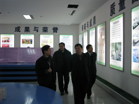 上图为山东省统计局副局长左振华(前排右一),统计局贸易处处长侯爱平(后排左一),罗庄区委常委、常务副区长魏九成(后排右一)一行参观公司展厅时的情景。