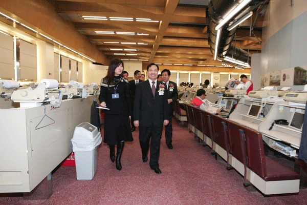 董事长刘保起及嘉宾们前往香港联交所的交易大厅