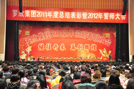 董事长指出,2012年是公司“十二五”规划的关键之年,我们既要看到新的挑战和困难并需要我们去面对和克服,又要看到我们加快发展的内外机遇和条件很多,要审时度势,加强人才队伍建设和思想文化建设,加快科技创新步伐,加强完善提高人才培训与培养,提高产品质量、降低运营成本,扩大销售网络。围绕实施通过“五个突破”推动“三个提升”为核心,扎实的抓好六个亮点,全面实施“十二五”规划目标。我们坚信2012年会再创新的辉煌,我们的目标也一定能够达到,罗欣的明天会更好。