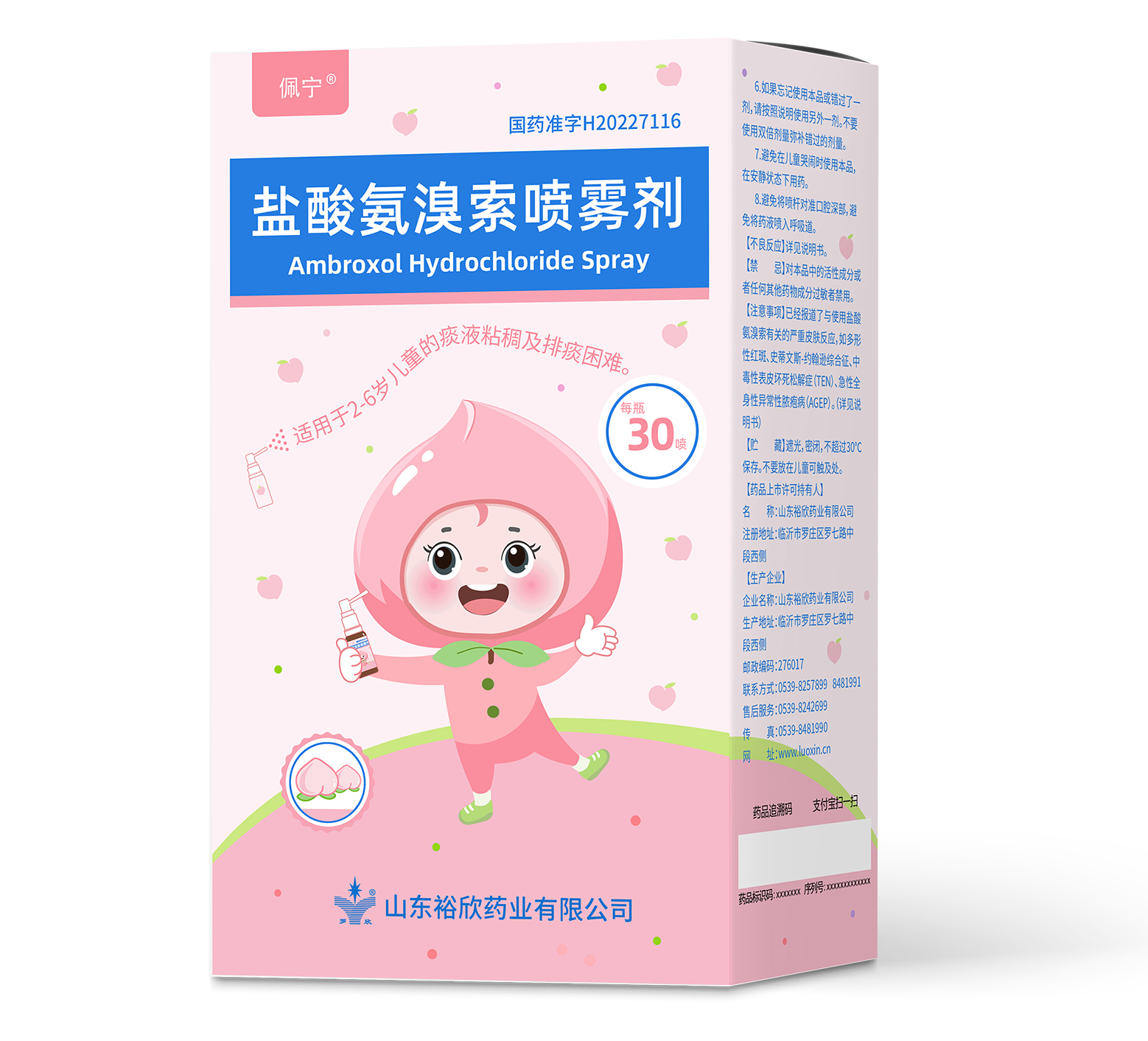 4.5ml︰0.225g,每喷含盐酸氨溴索7.5mg,每瓶30喷。 国药准字H20227116