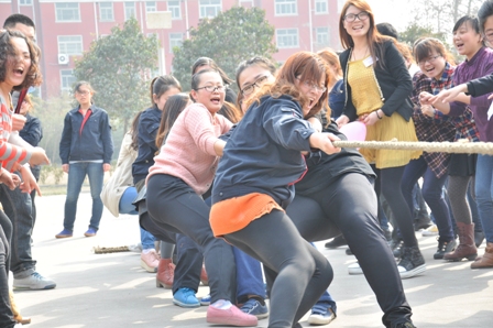 上图为拔河比赛热火朝天的场面