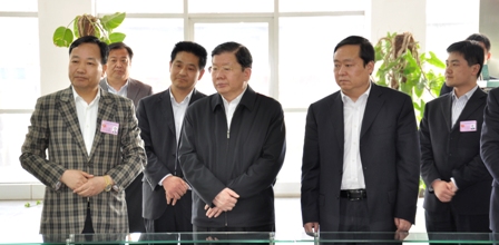 上图为陈先运市长(前排左二)一行参观公司展厅时的场景