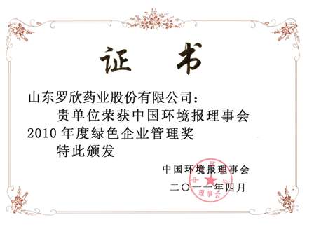 喜讯:公司获得“2010年度绿色企业管理奖”(2011-4-30)