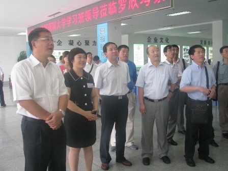 2011年7月30日,沈阳药科大学处级干部学习班专家、教授在党委书记、校长吴春福带领下莅临罗欣考察。吴校长一行首先观看了公司整体布局沙盘,详细了解了集团的企业文化、发展历程、产品开发、市场营销、境外上市及未来发展规划等情况,观看了企业介绍短片,并在管理中心三楼会议室与公司管理层及科研人员进行了座谈。
