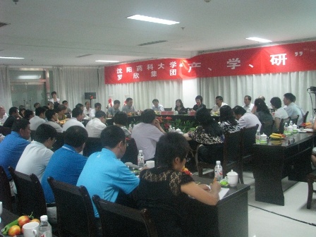 上图为沈阳药科大学与罗欣集团举行“产、学、研”座谈会时的情景
