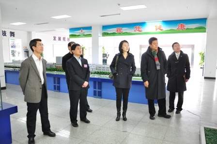 上图为北京惠旭金石投资公司杨晨董事(右三)一行参观公司展厅时的情景,市食品药品监督管理局催增久局长(左一)陪同上图为北京惠旭金石投资公司杨晨董事一行与公司管理层在会议室进行座谈时的情景