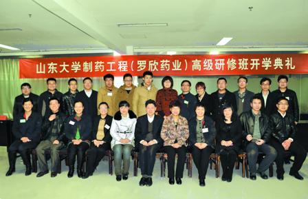 上图为“山东大学制药工程(罗欣药业)高级研修班开学典礼”合影留念