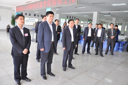 上图为孙丰刚副主任(前排左二)一行参观公司展厅的场景